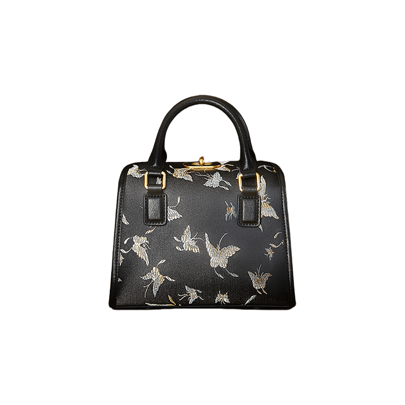 ブロケード・ボストン・バッグ ブラック・バタフライ デザイナーズ・レディース・ハンドバッグ