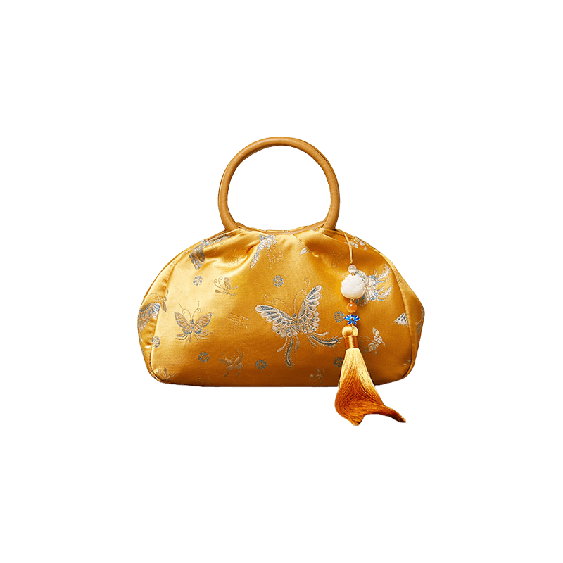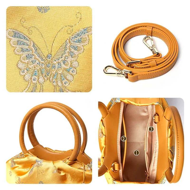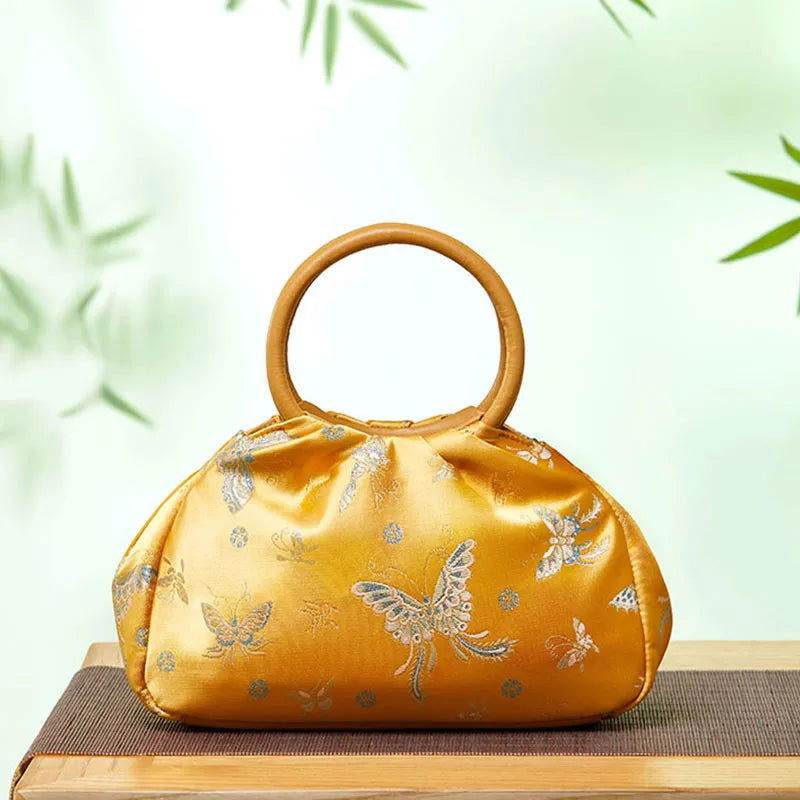 ブロケード中国スタイルバッグ蝶女性高級黄色ハンドバッグ
