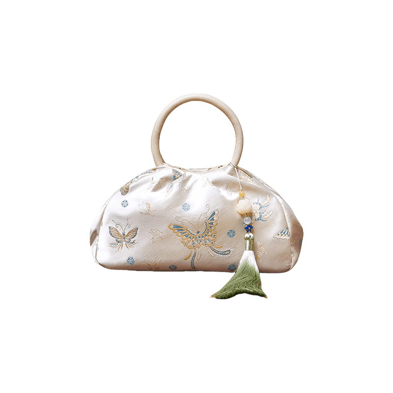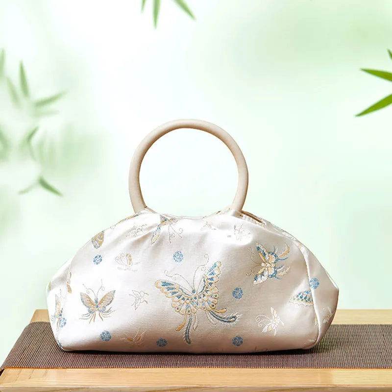 ブロケード中国スタイル・デザイナー・バッグ ホワイト・バタフライ・ハンドバッグ