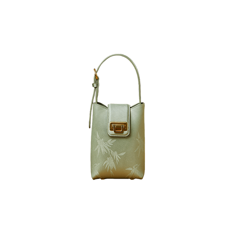 エンボスレザー・グリーンバンブーリーフ・フォンバッグ
