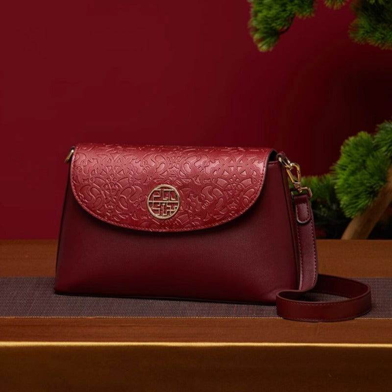 エンボスレザーレッドショルダーバッグウェディングハンドバッグ