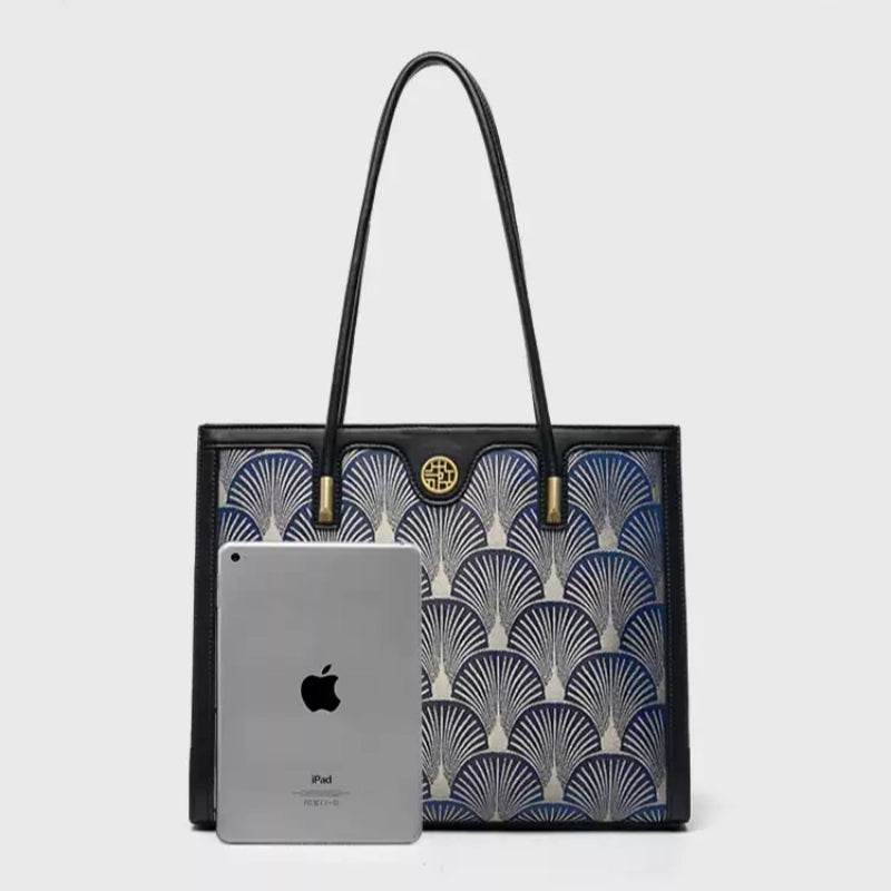刺繍レザーエレガントシングルショルダートートバッグ