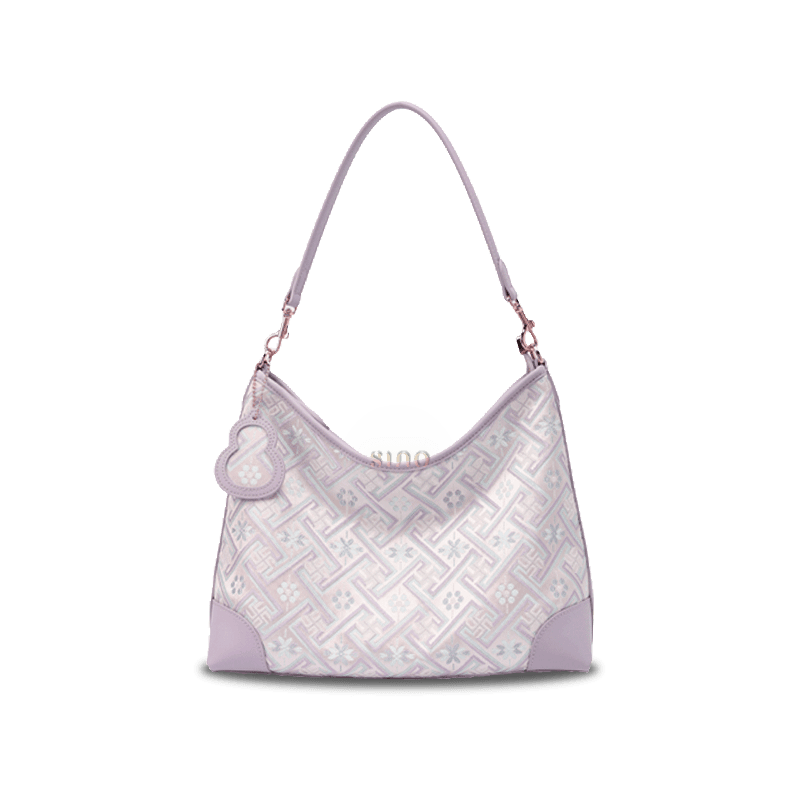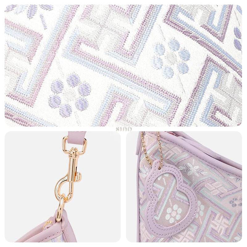 荘錦レザーショルダーバッグ・トートバッグ・ロマンチック・パープル