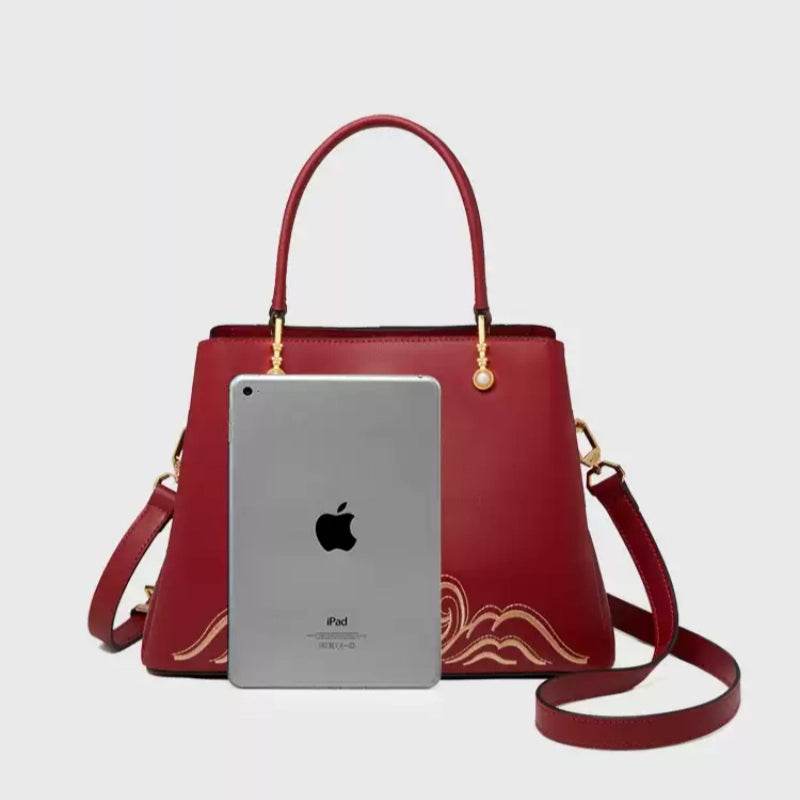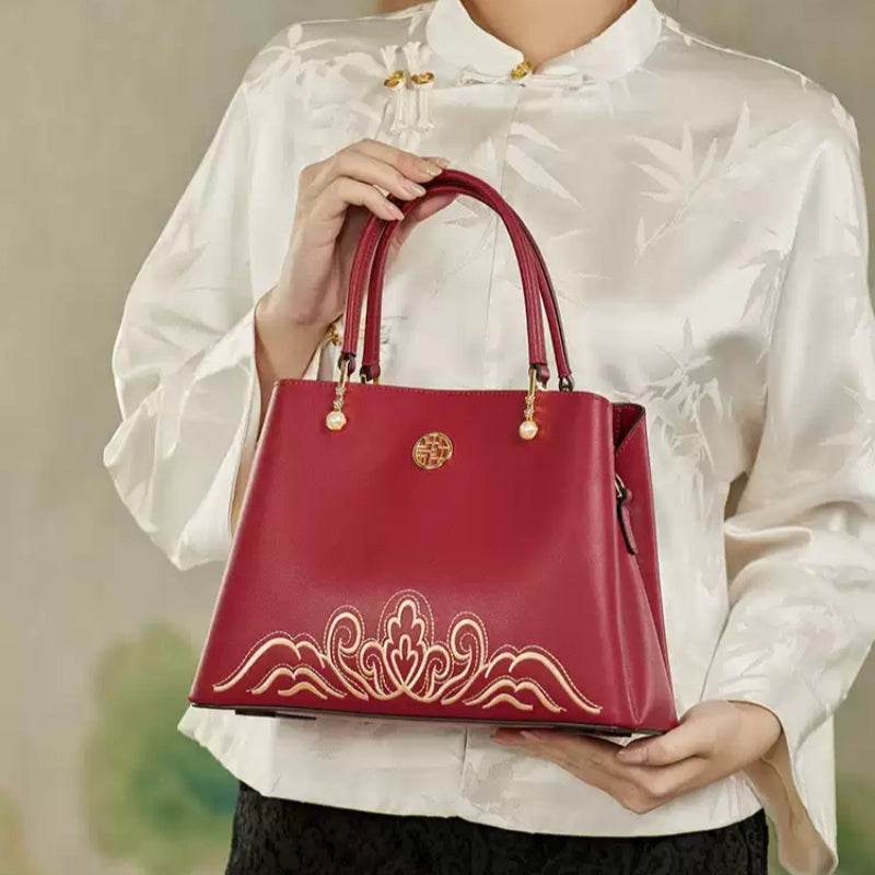 Embroidery Genuine Leather Elegant Crossbody Bag