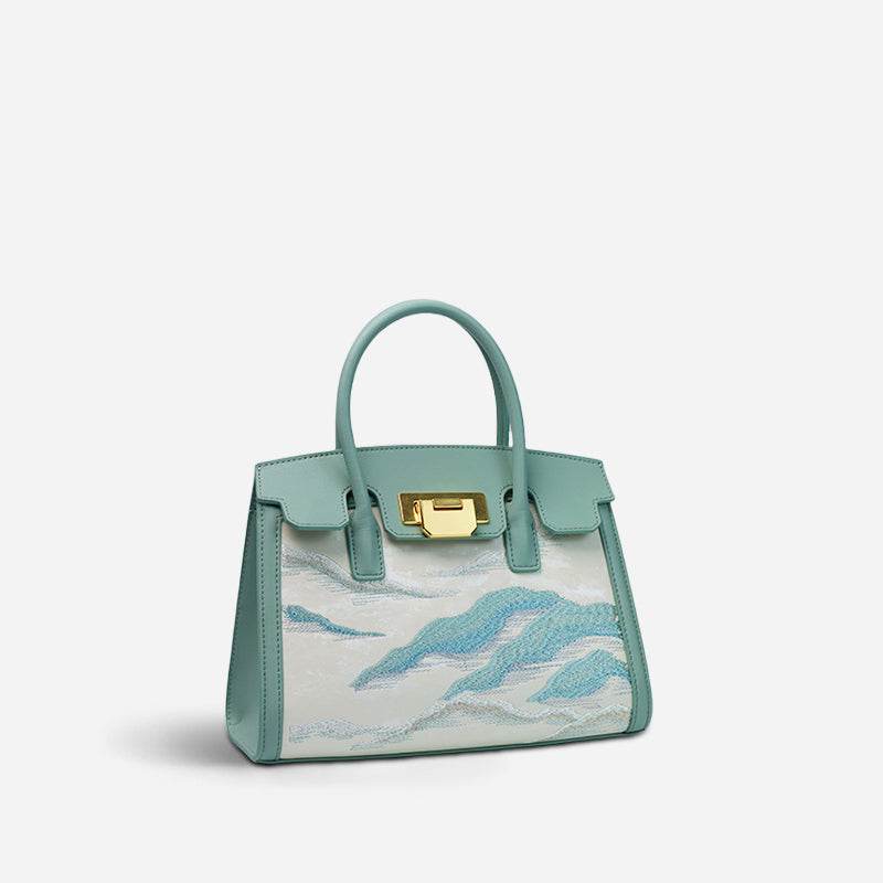 Embroidery Leather Elegant Birkin Handbag Cloud Mountain