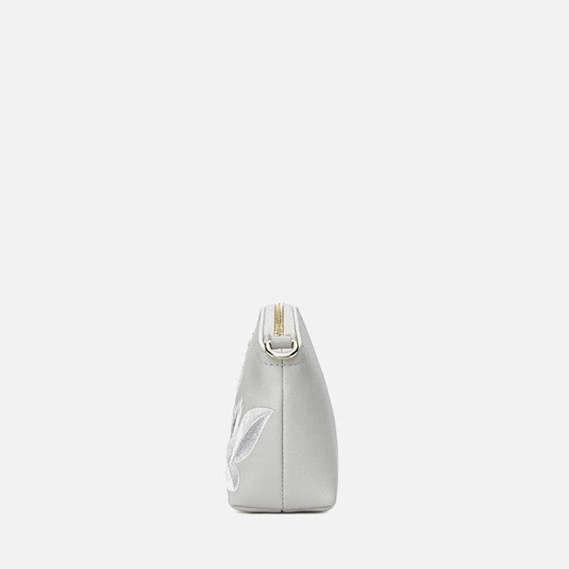 Embroidery Leather Grey Camellia Women Handbag Wallet