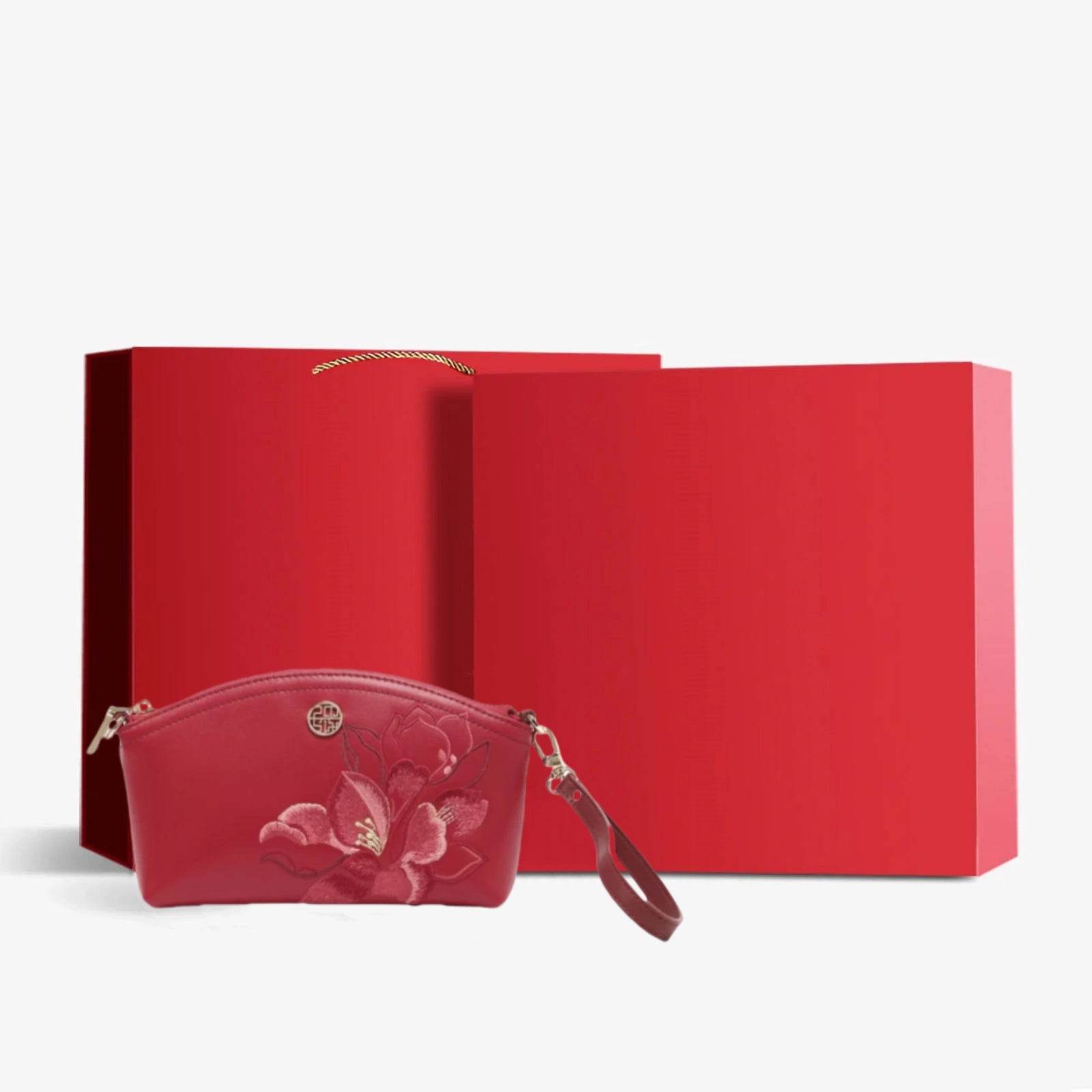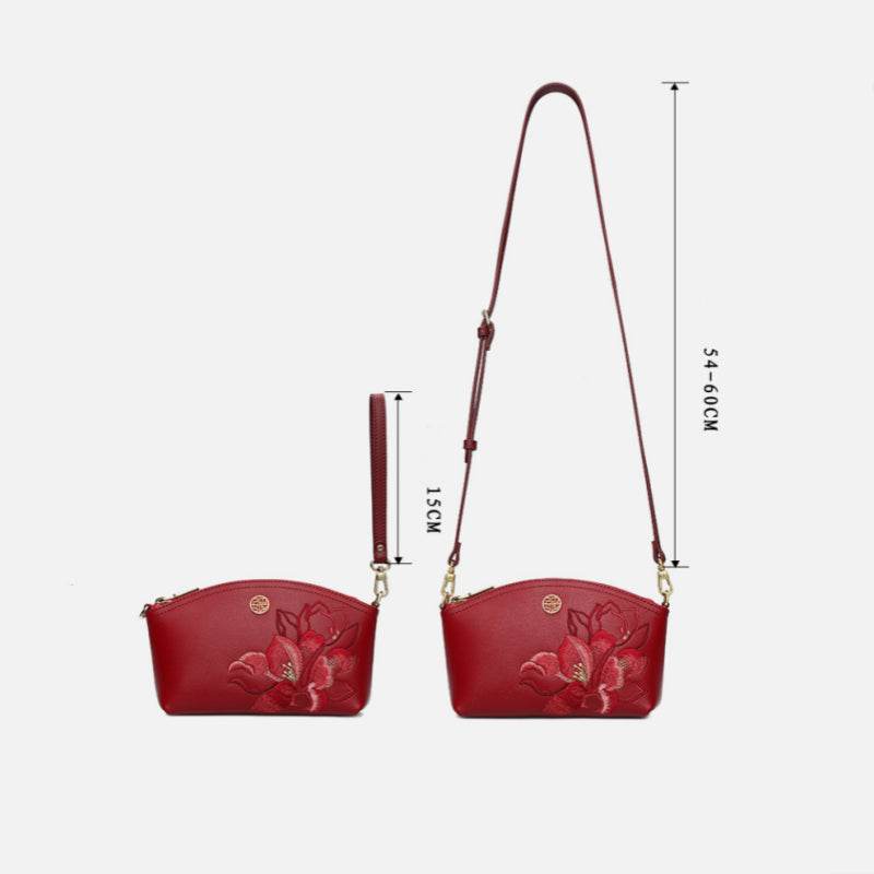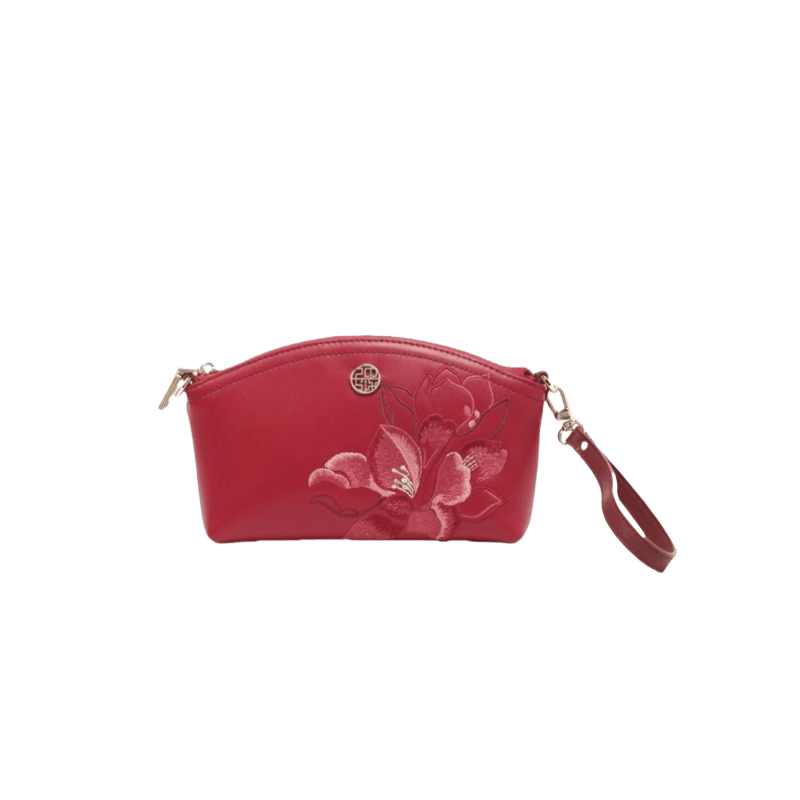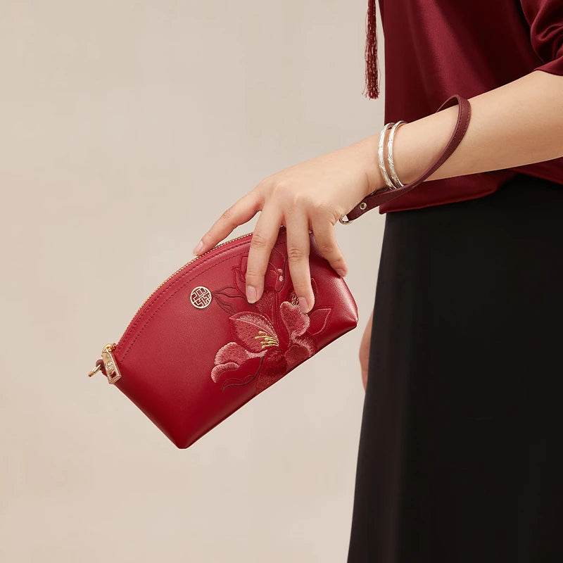 Embroidery Leather Red Magnolia Women‘s Handbag Wallet