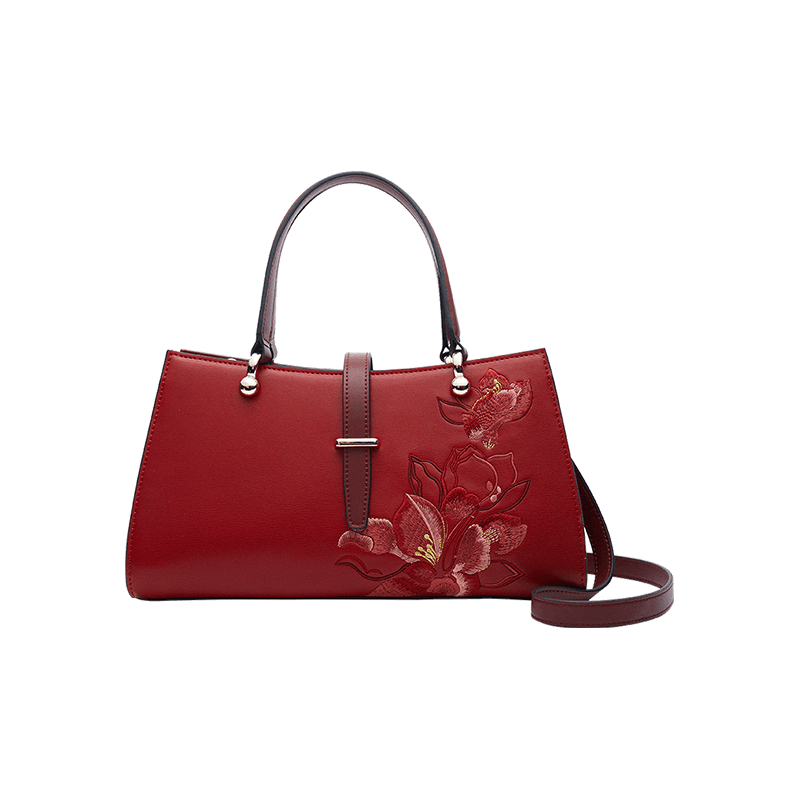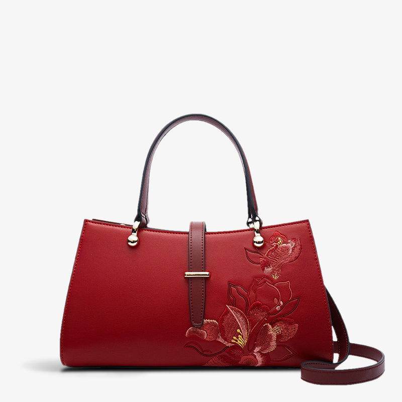 Embroidery Leather Red Magnolia Women’s Crossbody Handbag
