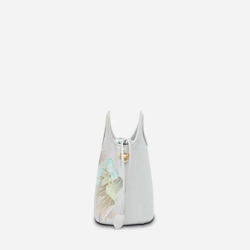 Printed Jacquard Lotus Gray Drawstring Bucket Bag