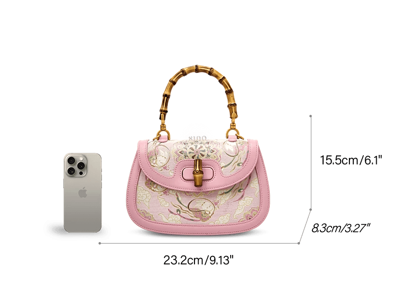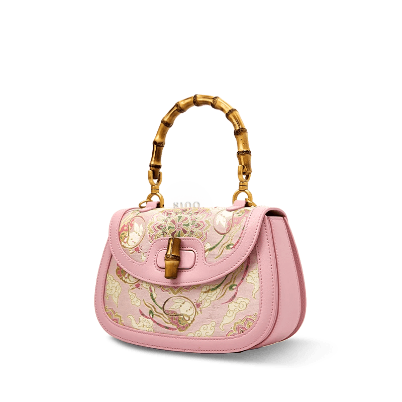 Song Brocade Pink Mulberry Silk Handbag with Bamboo Handle